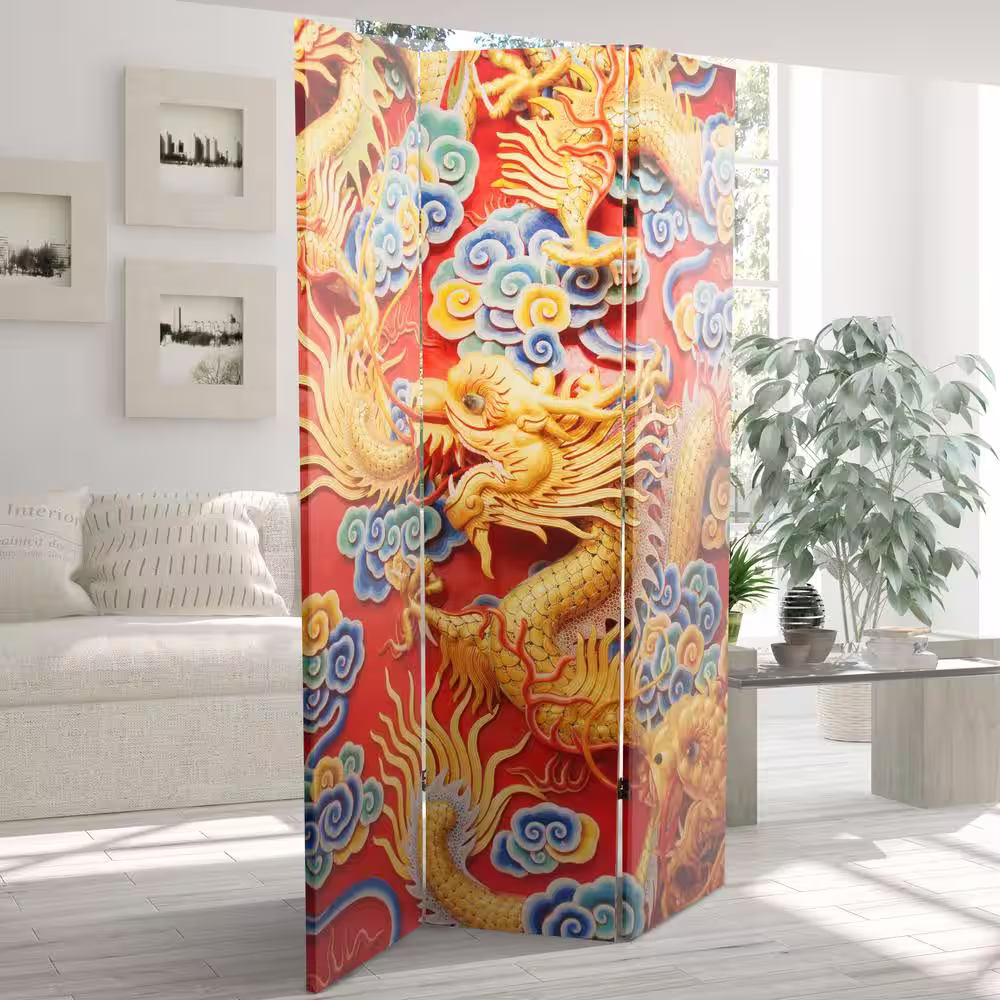 Oriental Furniture Dragon 6 ft. Printed 3-Panel Room Divider