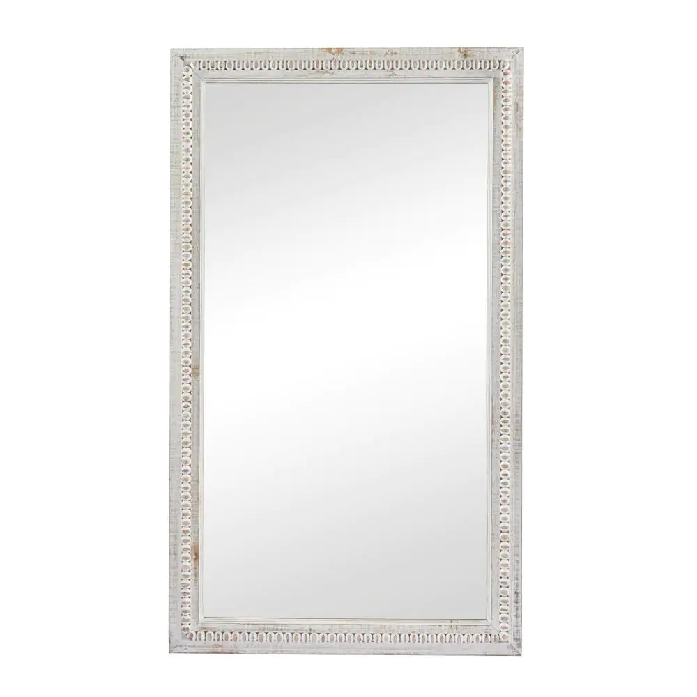 Litton Lane 48 in. x 28 in. Carved Beaded Rectangle Framed White Wall Mirror