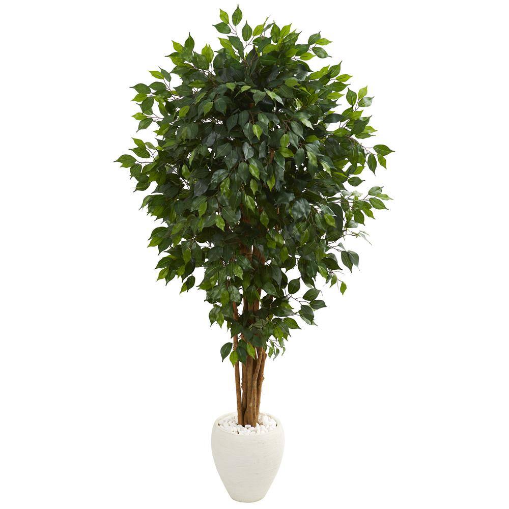 Nearly Natural Indoor 6 ft. Ficus Artificial Tree in White Planter