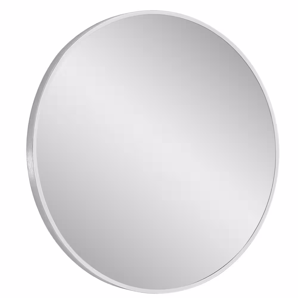 Design Element Vera 28 in. x 28 in. Modern Round Framed Brushed Steel Wall Mount Vanity Mirror
