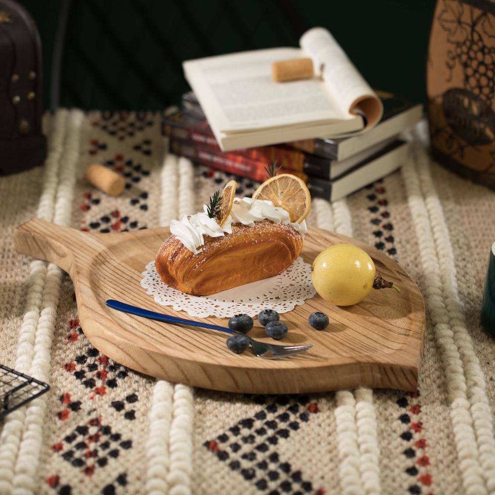 Vintiquewise Beige Burned Wood Pizza Peel Leaf Shape Round Serving Display Tray