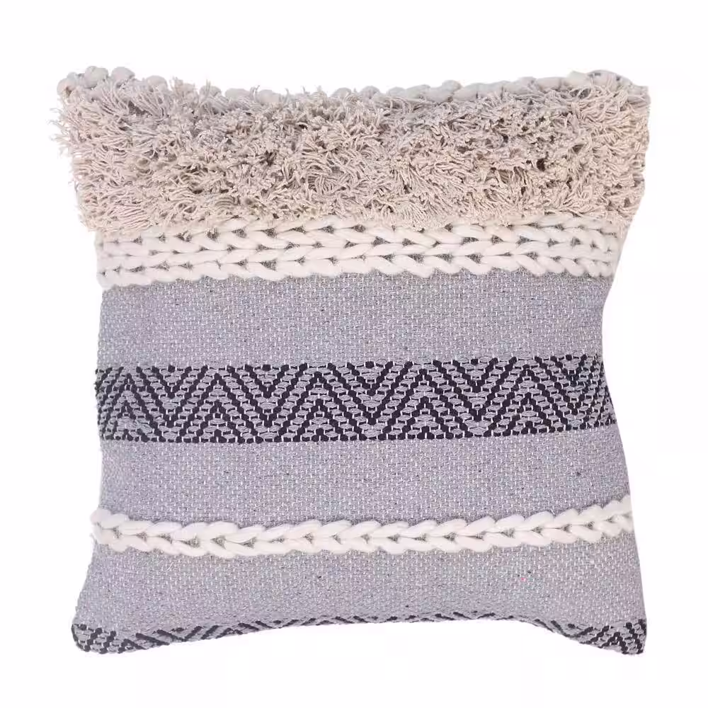 THE URBAN PORT Multicolor Geometric Lined Pattern Handcrafted Cotton Accent 4 in. x 18 in. Throw Pillow with Woven Yarn (Set of 2)