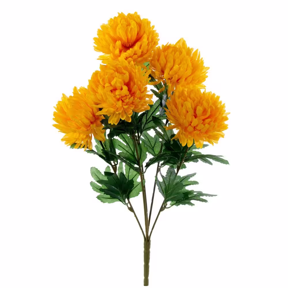 Vickerman 23 in. Marigold Yellow Artificial Mum Bush Floral Arrangement