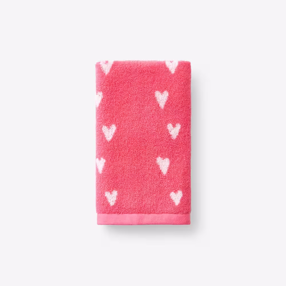 Company Kids by The Company Store Pink Cotton Company Kids Hearts Yarn-Dyed Single Hand Towel