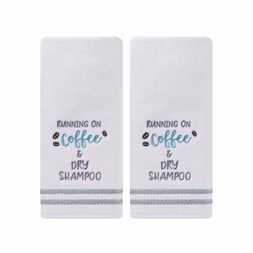None White 100% Cotton Running on Coffee Hand Towel (2-Pack)