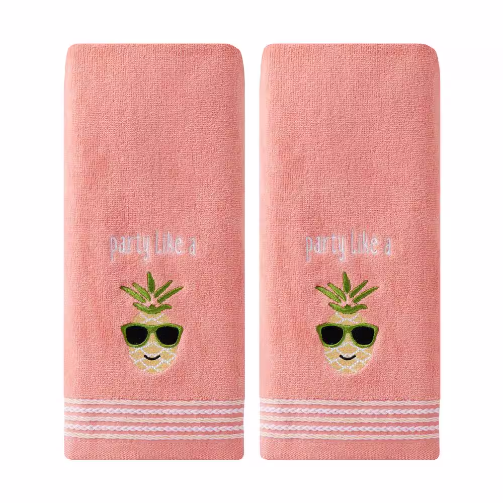 None Coral Pink 100% Cotton Party Pineapple Hand Towel (2-Pack)