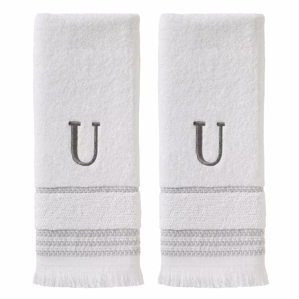 SKL Home Casual Monogram Letter U Hand Towel 2 piece set, white, cotton