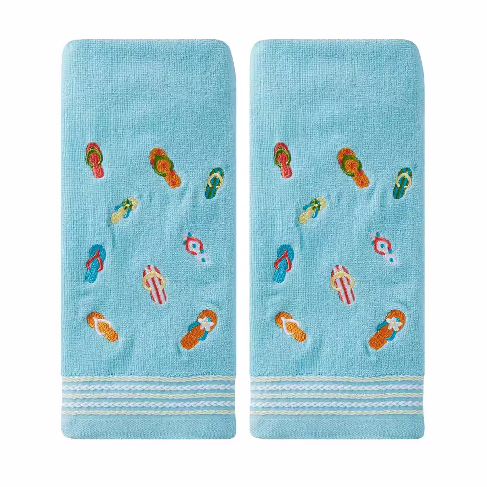 None Blue 100% Cotton Flips and Flops Hand Towel (2-Pack)