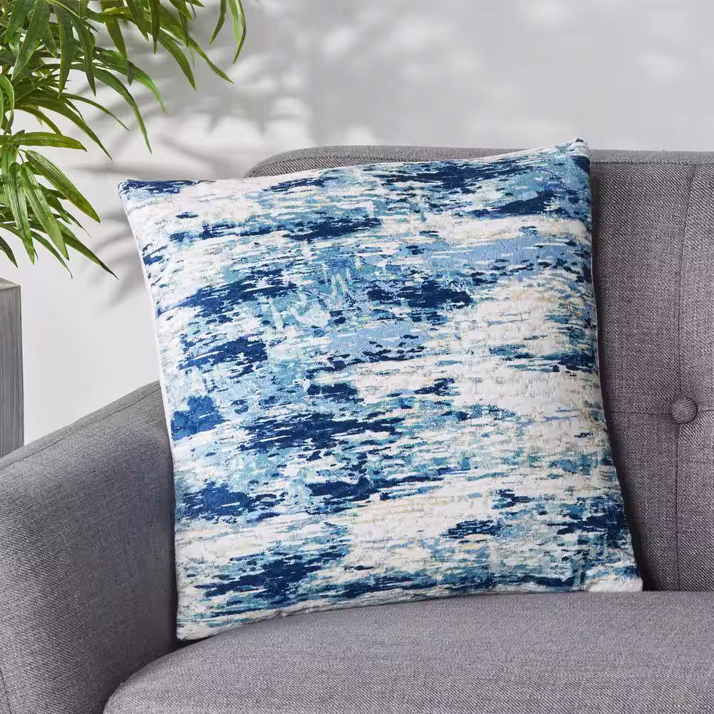 Noble House Beale Blue and Multicolor Print Polyester 18 in. x 18 in. Throw Pillow