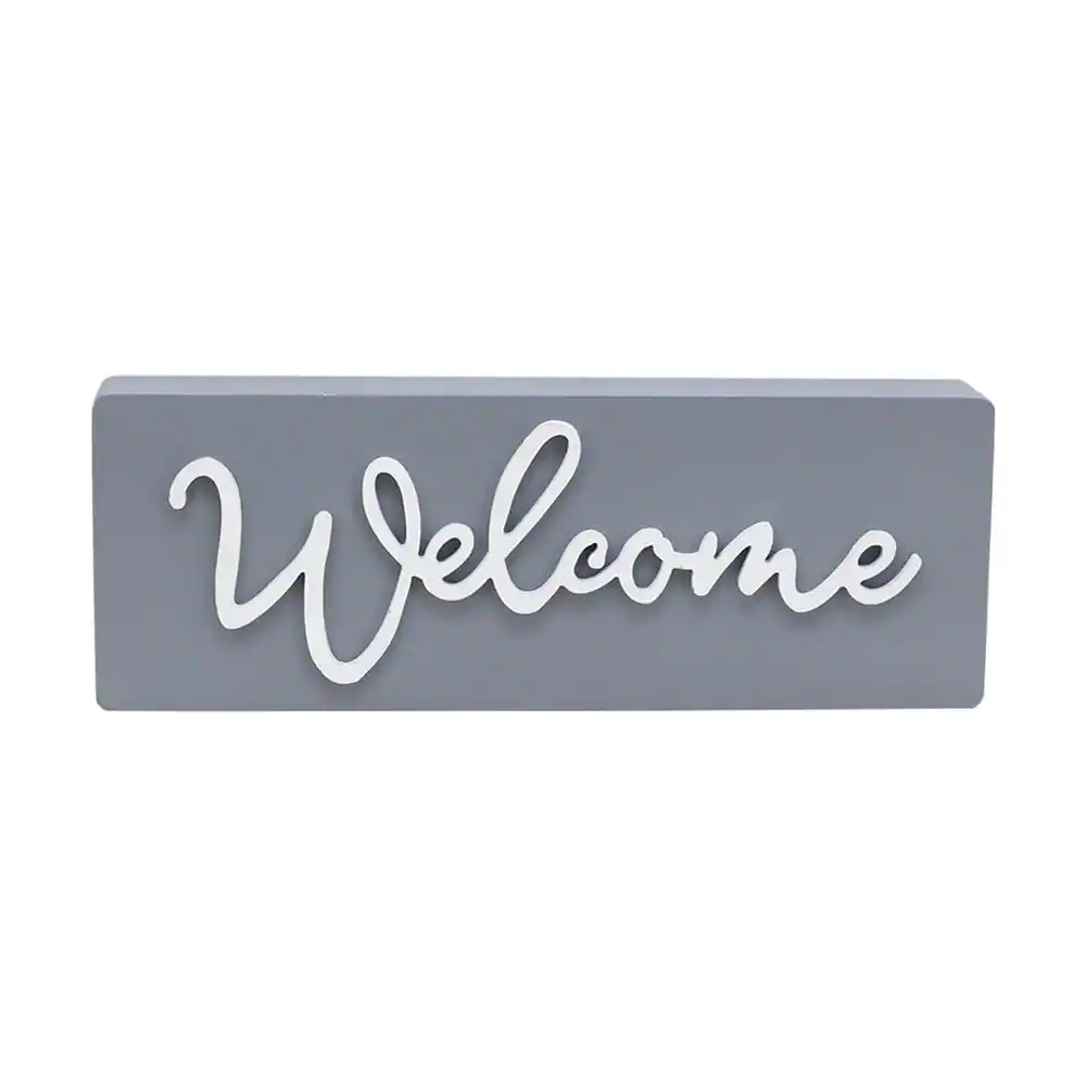 None Modern Farmhouse White 3D Cutout Welcome Word Gray Wood Plaque Wall Decorative Sign