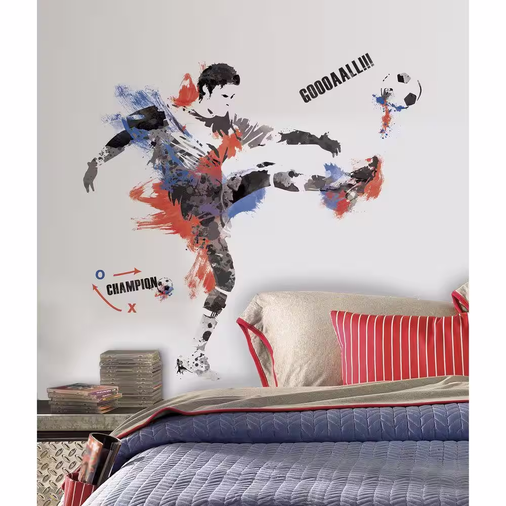 RoomMates 2.5 in. x 18 in. Men's Soccer Champion Peel and Stick Giant Wall Decals