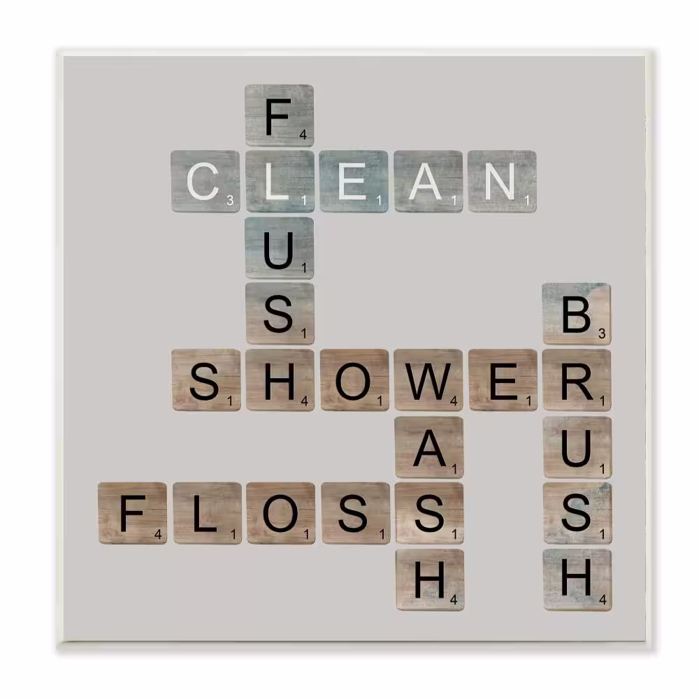 Stupell Industries 12 in. x 12 in. "Scrabble Bathroom Illustration" by Longfellow Designs Printed Wood Wall Art