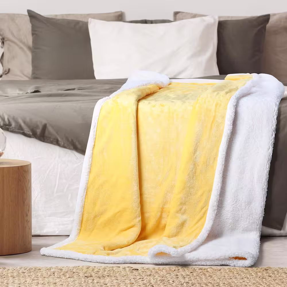 None Yellow Print Flannel plus Fleece Luxury Lightweight Throw Blanket 50 in. x 60 in.