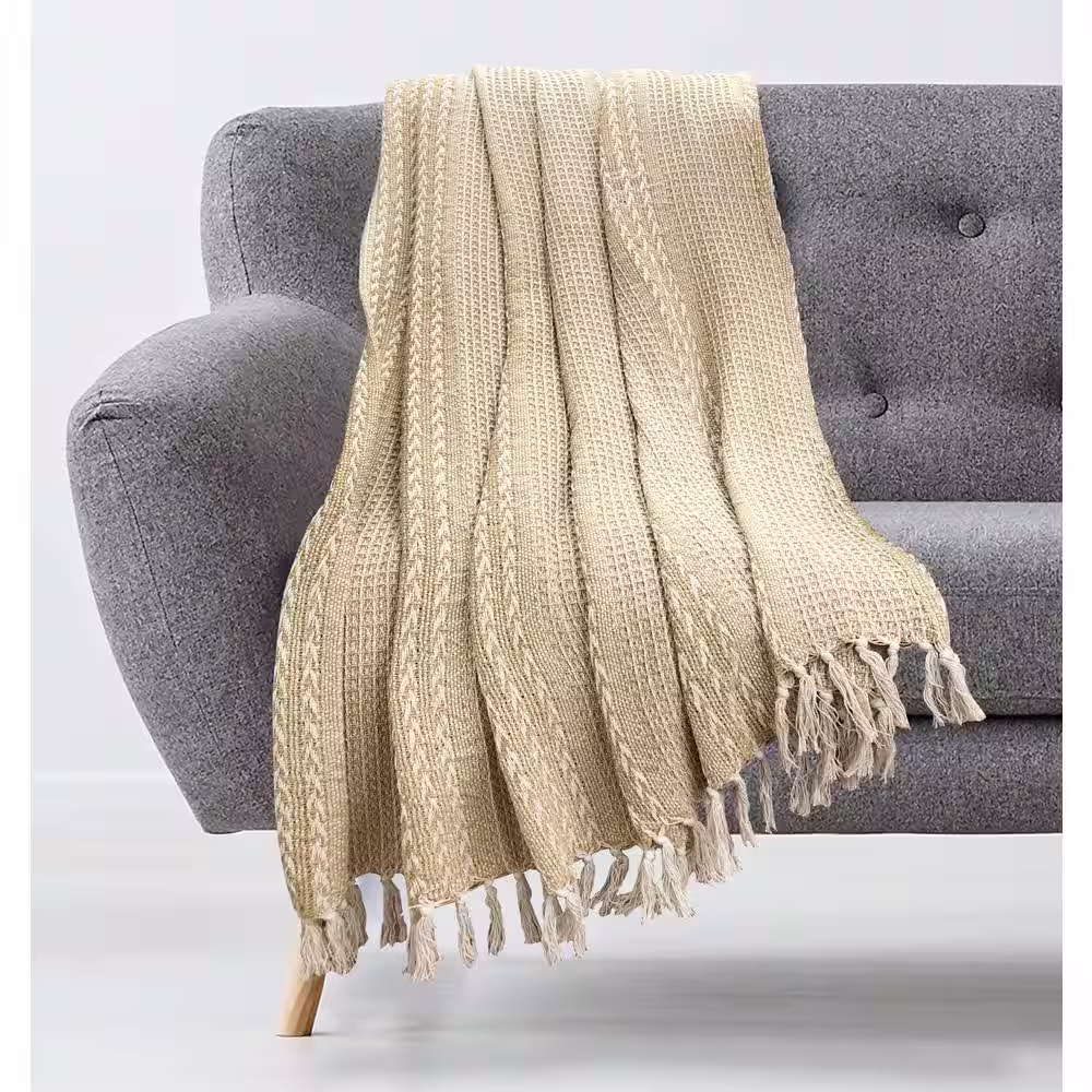 Harper Lane Mishka Cotton Tan/White 50 in. x 60 in. Throw