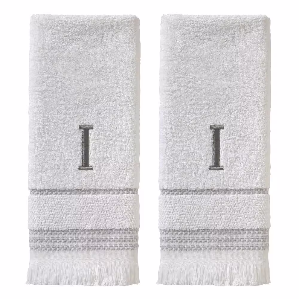 SKL Home Casual Monogram Letter I Hand Towel 2 piece set, white, cotton