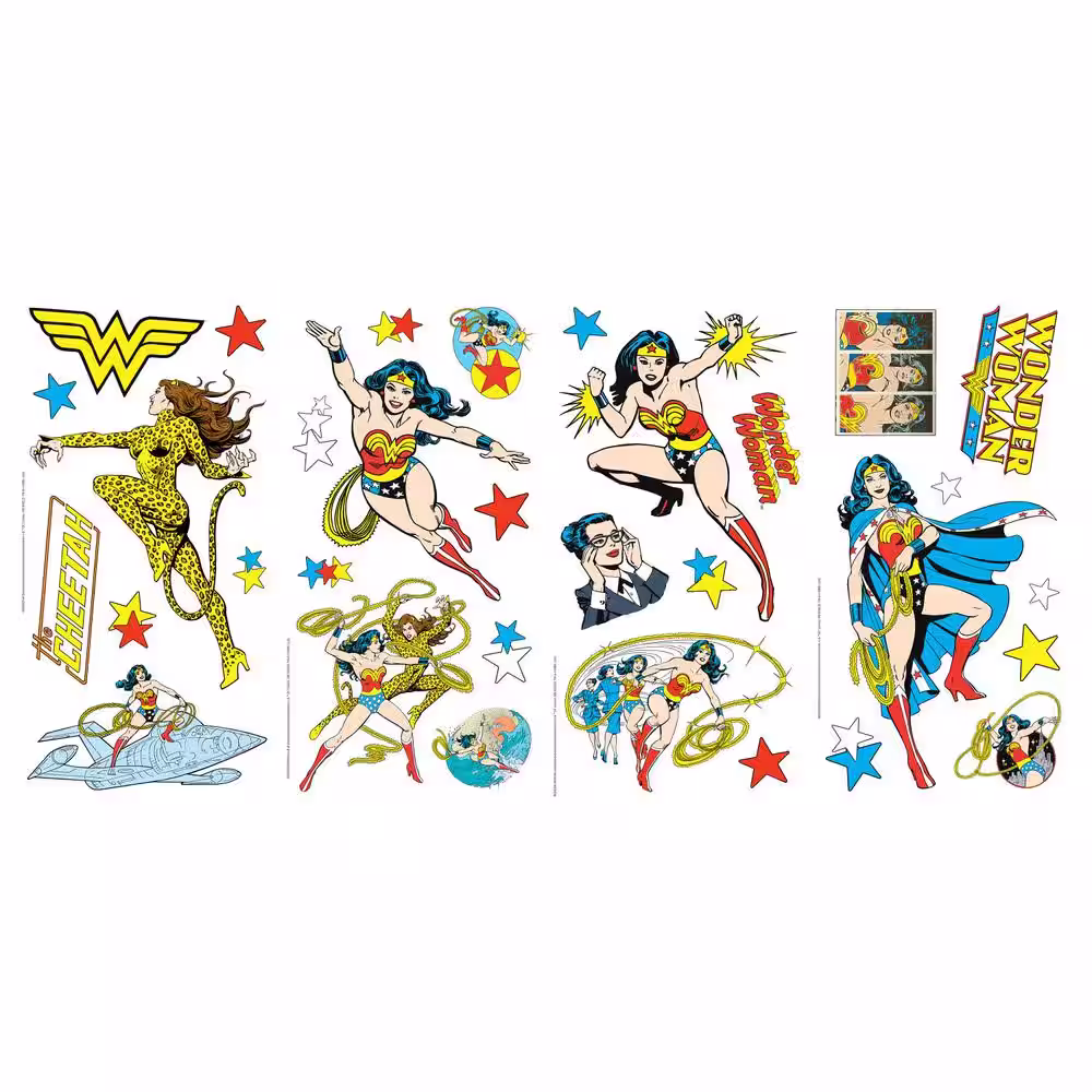 RoomMates Yellow and Blue and Red Wonder Woman Cartoon Wall Decals