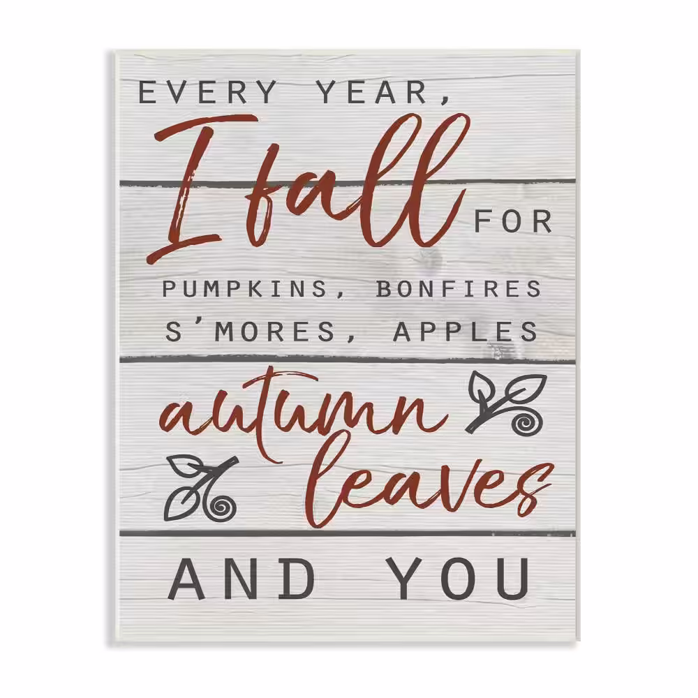 Stupell Industries 10 in. x 15 in. "Every Year I Fall For You Red and Grey Typography" by Daphne Polselli Printed Wood Wall Art