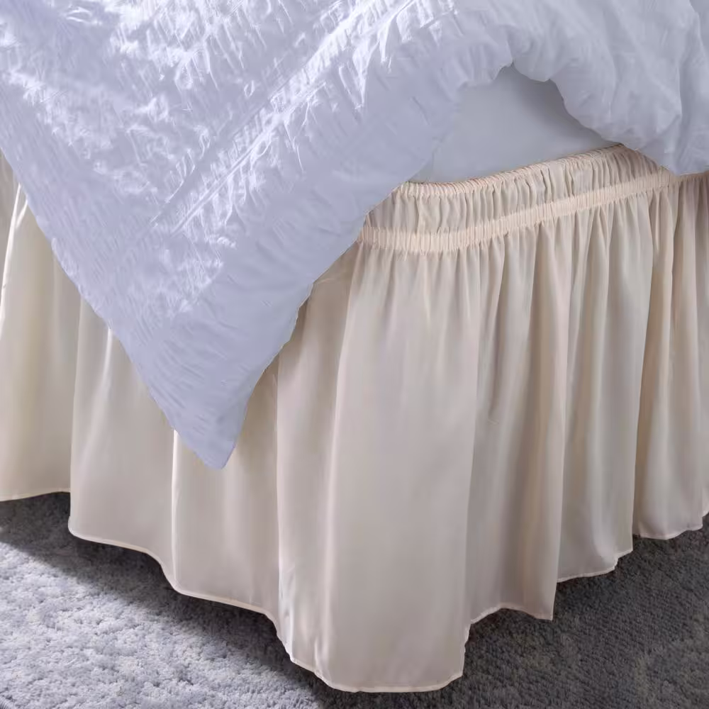 Home Details 18 in. Beige Drop Wrap Around Twin/Full Bed Skirt Ruffle