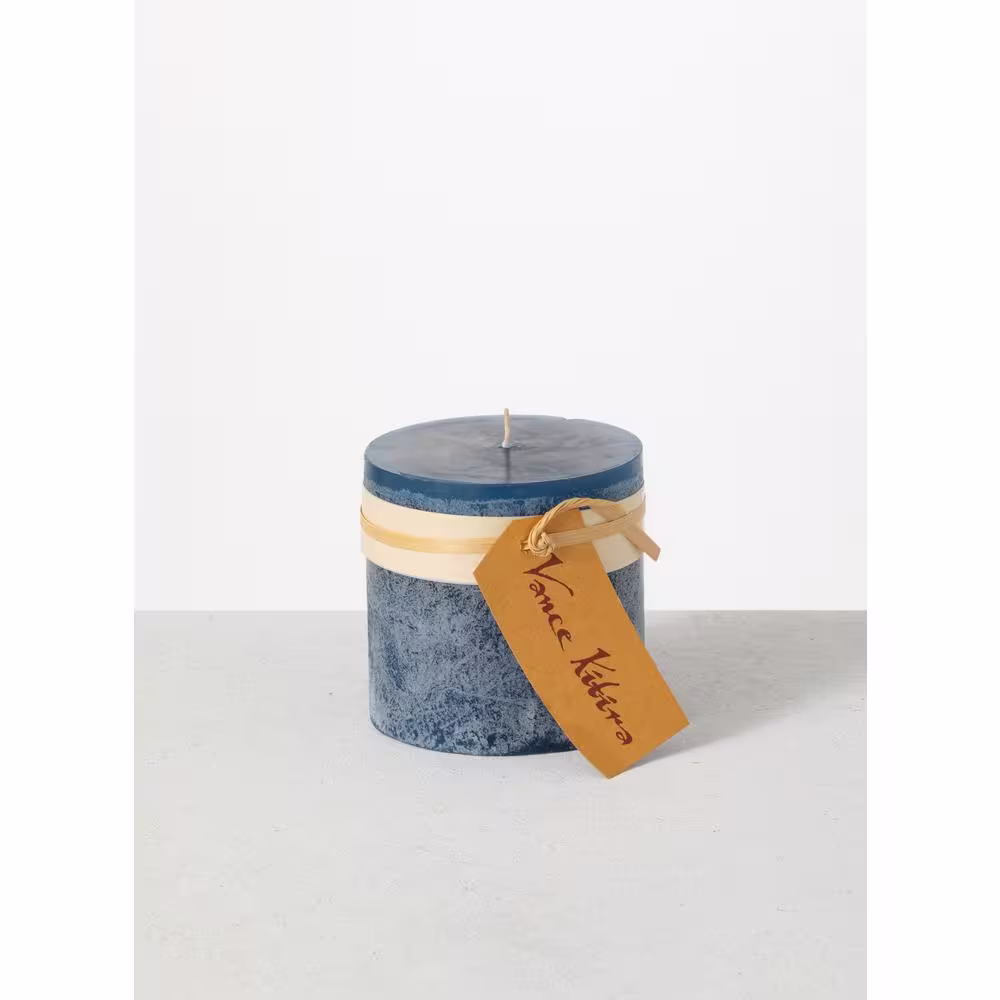 Vance Kitira 4.25 in. English Blue Timber Pillar Candle