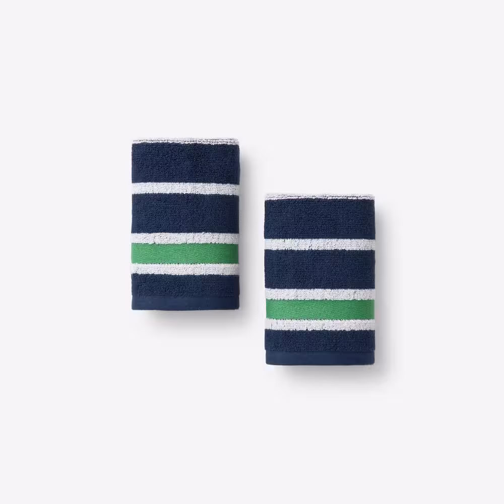 The Company Store Company Kids Rugby Stripe Navy Multi Cotton Square Wash Cloth Set (Set of 2)
