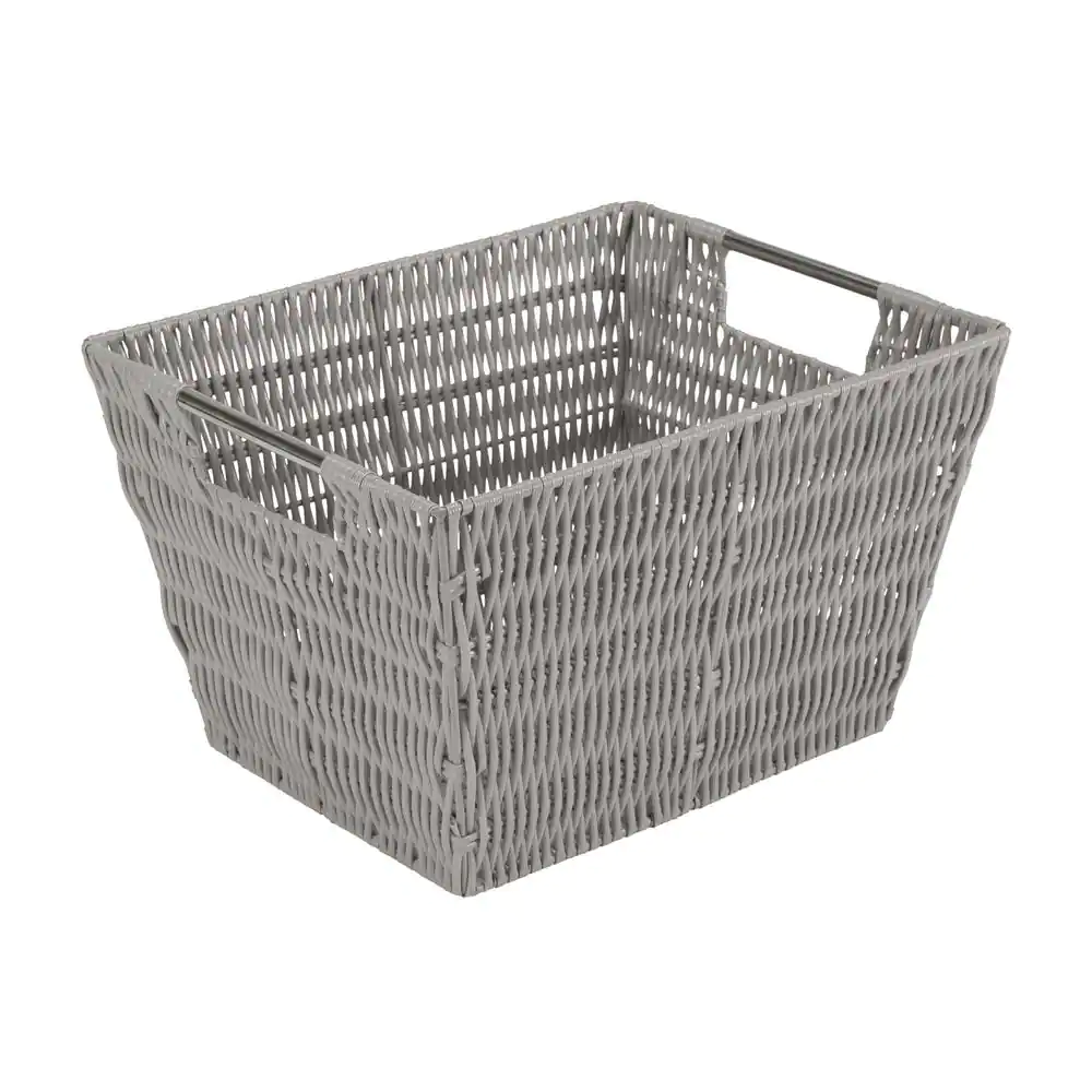 SIMPLIFY 8 in. x 10 in. Grey Medium Rattan Storage Tote Basket