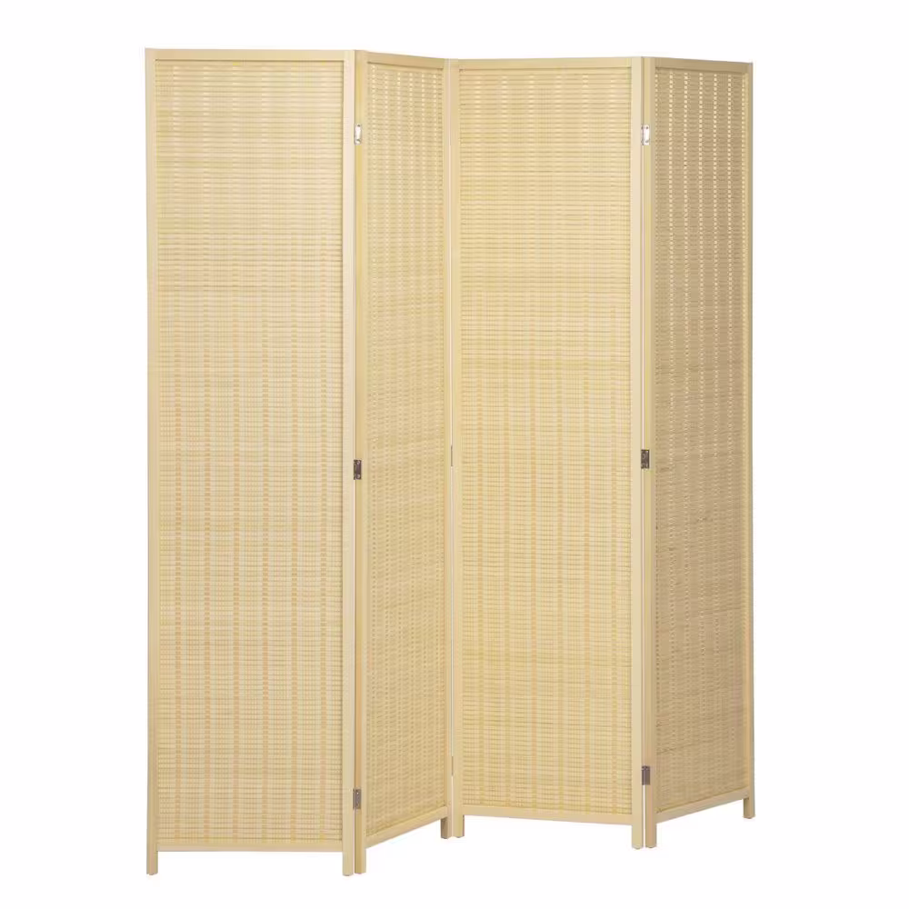None 6 ft. Tall 4-Panel Natural Bamboo Room Divider, Folding Privacy Screen, Freestanding Partition for Home and Office