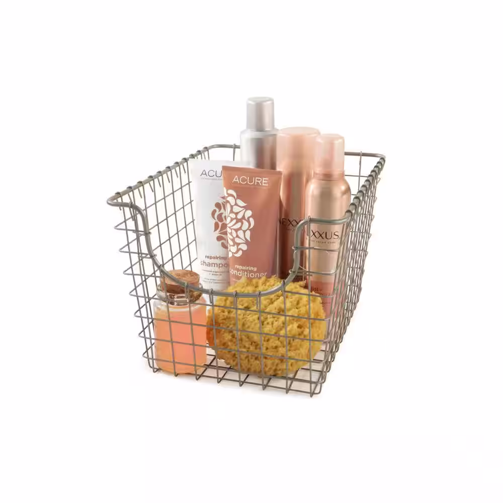 Spectrum Scoop 12.75 in. D x 9.5 in. W x 8 in. H Small Satin Nickel Steel Wire Storage Bin Basket Organizer