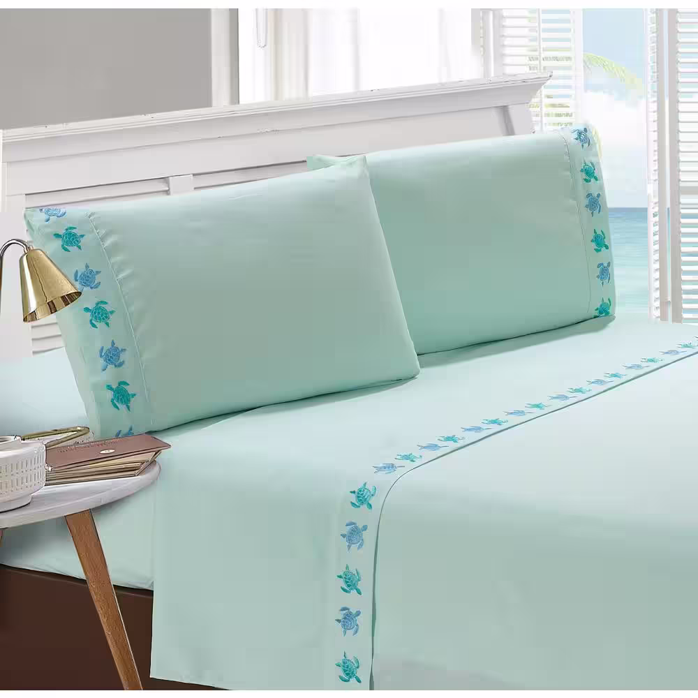 Harper Lane Turtle Blues Blue Microfiber Embroidered Pillowcases (Set of 2)