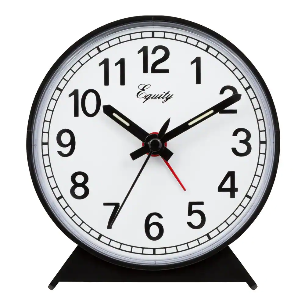 Equity by La Crosse Analog 4 in. Round Keywind Alarm Clock, Black