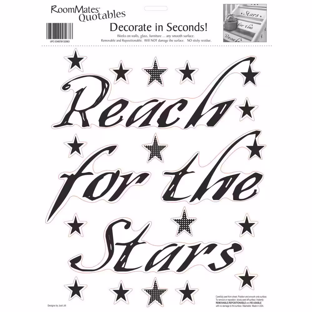 RoomMates Black Reach For The Stars Peel and Stick Single Sheet