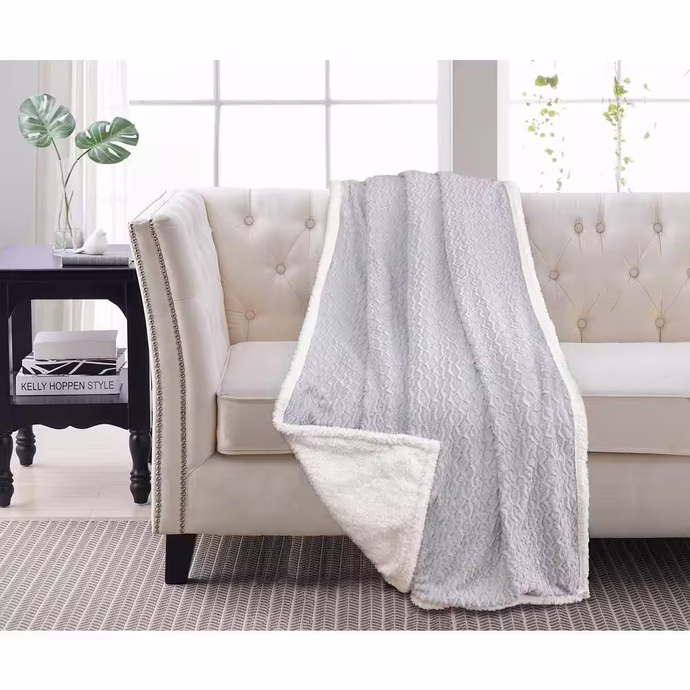 Harper Lane Genoa Faux Fur Sherpa Grey Hourglass Throw Blanket 50 x 60 inches