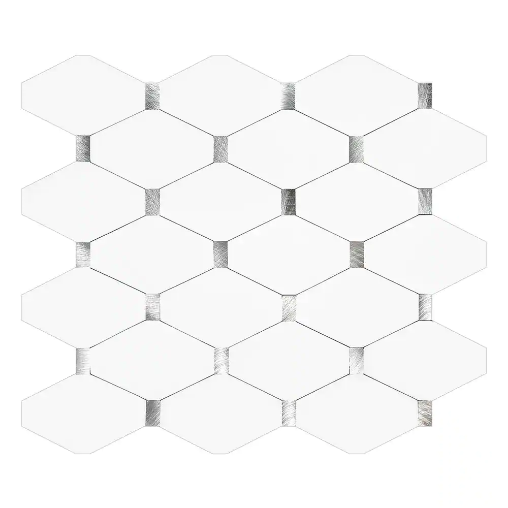 MURELLA White with Brushed Silver 11.22 in. x 11.90 in. Metal Peel and Stick Backsplash Tile (0.9 sq. ft./pack)