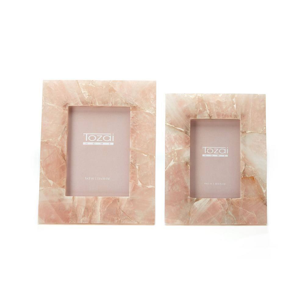 Two's Company Pink Quartz Picture Frames in Gift Box Includes 2-Sizes: 4 in. x 6 in. and 5 in. x 7 in. (Set of 2)