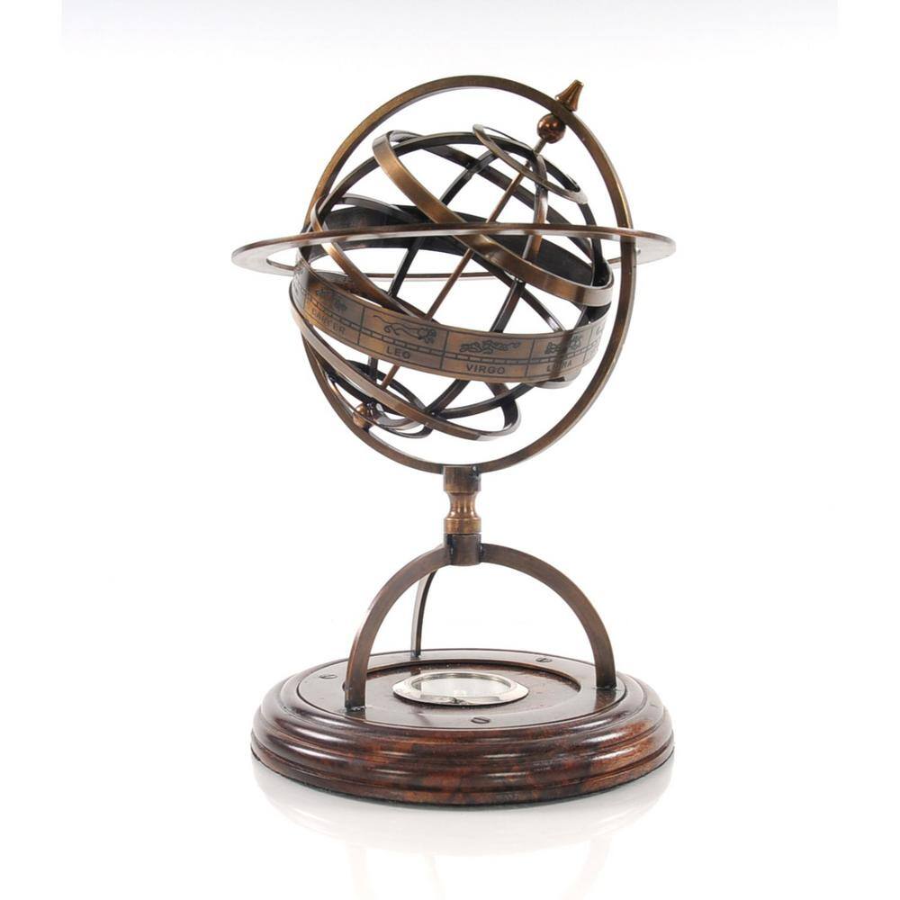 HomeRoots Dahlia Abstract Brass Armillary With Compass On Wood Base