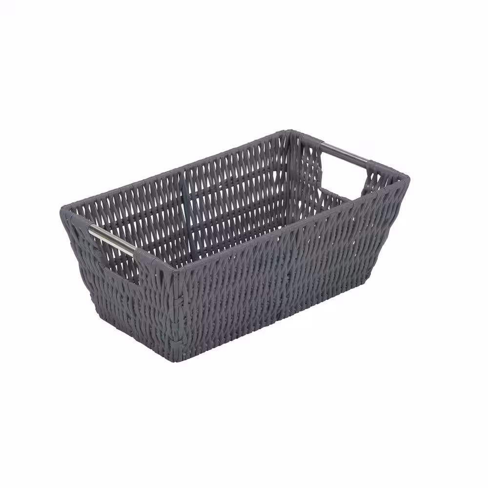 SIMPLIFY 4.5 in. x 6.5 in. Gray Small Shelf Storage Rattan Tote Basket