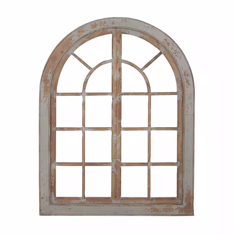 Litton Lane 48 in. x 37 in. Gray Arched Window Wood Wall Art