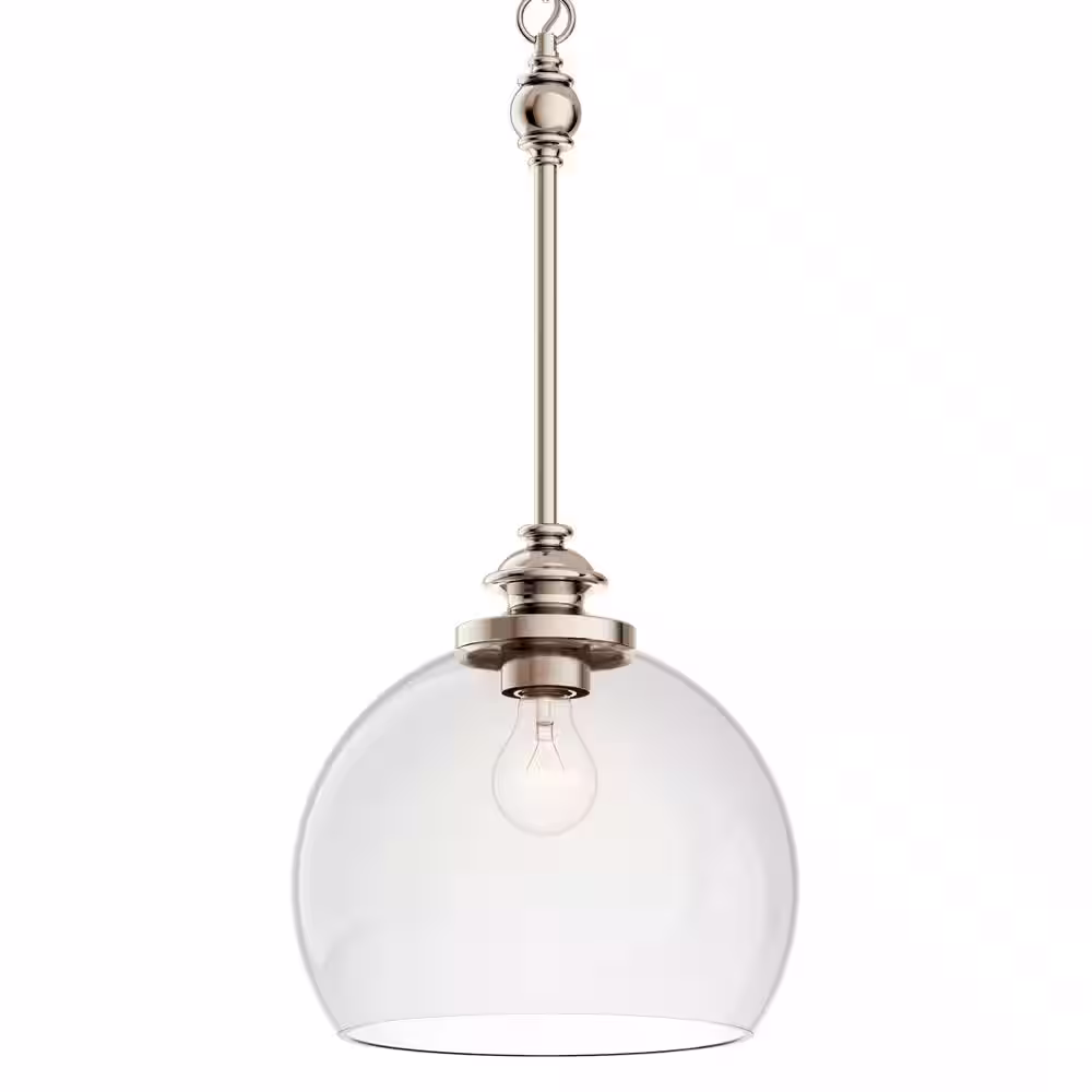 KICHLER Lecelles 1-Light Polished Nickel Traditional Globe Kitchen Pendant Hanging Light with Clear Glass Shade
