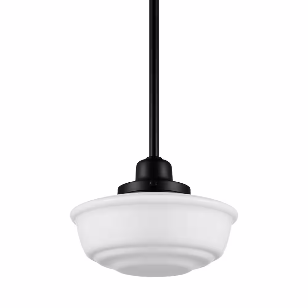 Hampton Bay Belvedere Park 1-Light Espresso Bronze Pendant Hanging Light with Frosted Opal Glass Shade, Farmhouse Kitchen Lighting