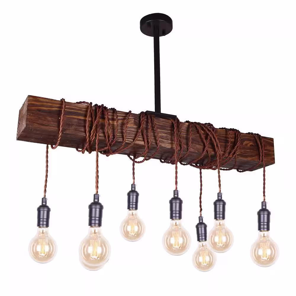 Parrot Uncle Belz 8-Light Brown Kitchen Island Wood Beam Pendant