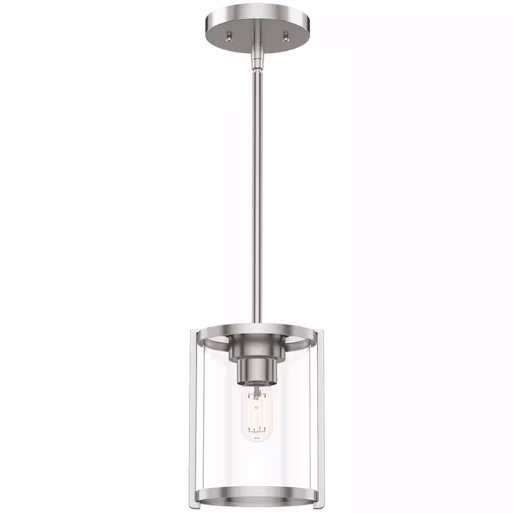 Hunter Astwood 1 Light Brushed Nickel Mini Pendant with Glass Shade Kitchen Light