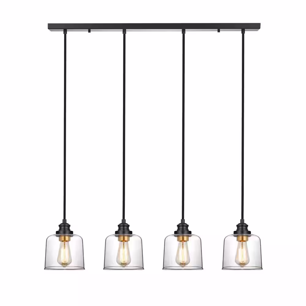 Hampton Bay Knightley 4-Light Caged Matte Black Pendant Island Hanging Light, Industrial Farmhouse Kitchen Lighting