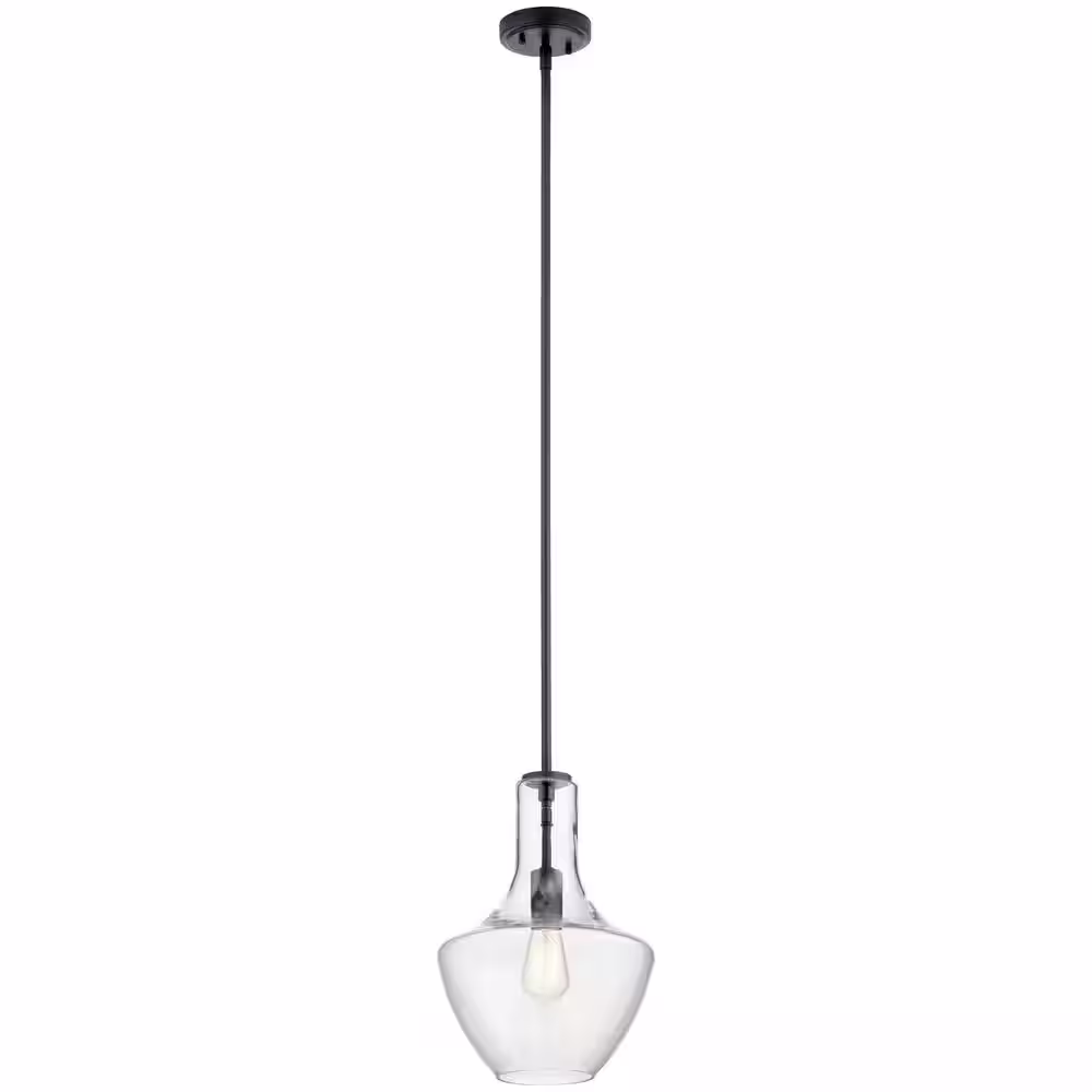 KICHLER Everly 15.25 in. 1-Light Black Transitional Shaded Kitchen Bell Pendant Hanging Light with Clear Glass