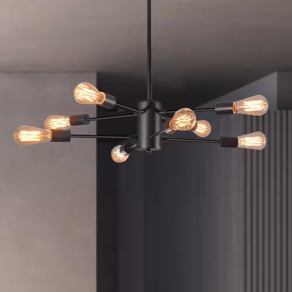 YANSUN 8-Light Black Modern Sputnik Chandelier Hanging Pendant Light Fixture for Dining Room Bedroom Living Room Kitchen Foyer