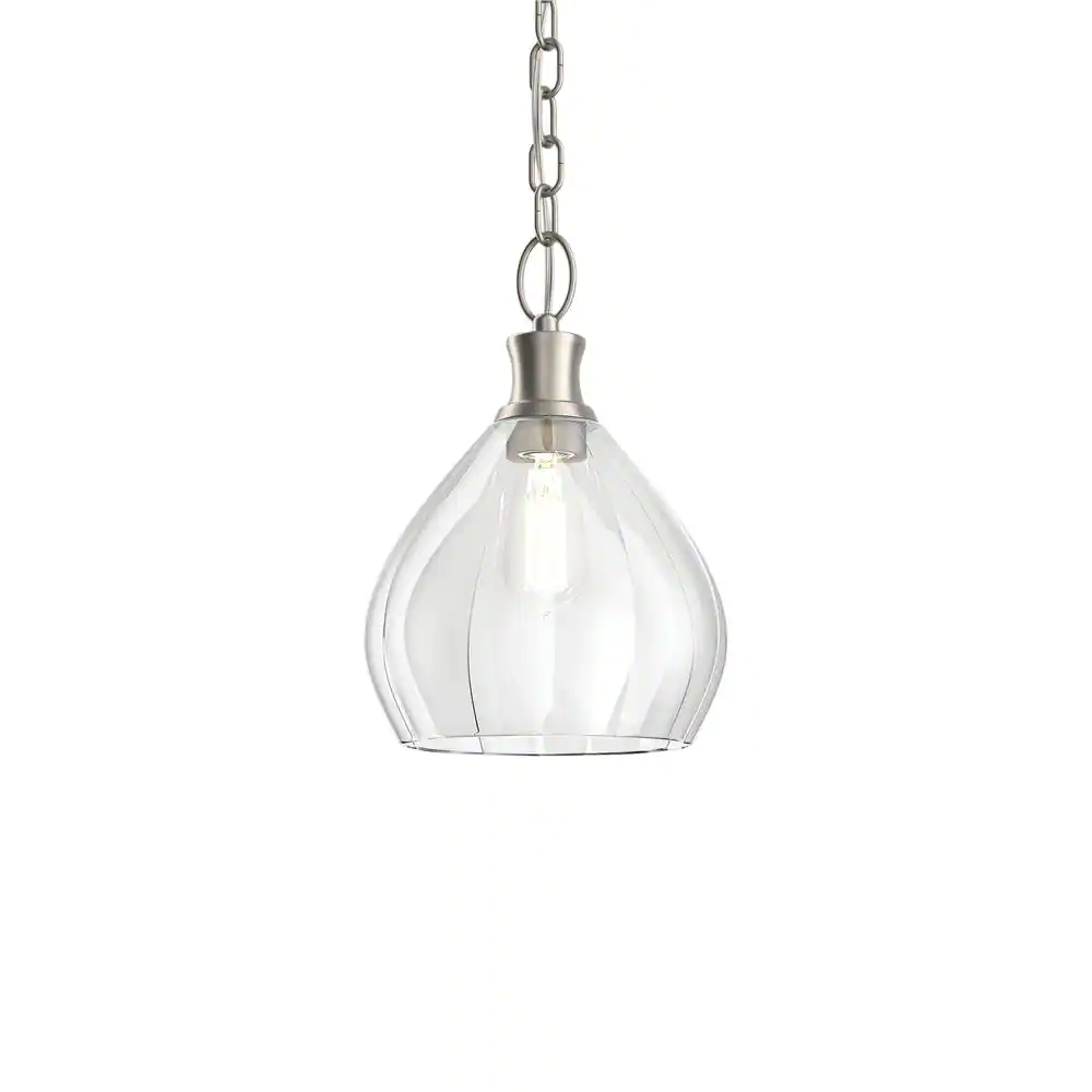 KICHLER Merriam 8 in. 1-Light Brushed Nickel Farmhouse Shaded Kitchen Pendant Hanging Light with Clear Glass