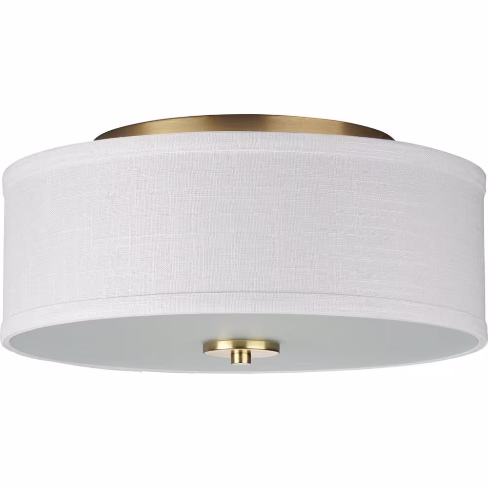 Progress Lighting Inspire Collection 2-Light Satin Brass Summer Linen Shade Transitional Kitchen Ceiling Light Drum Flush Mount