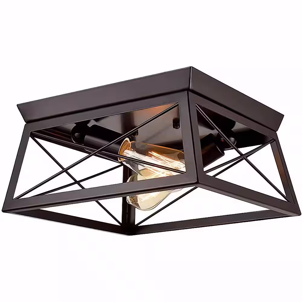 YANSUN 12.2 in. 2-Light Farmhouse Flush Mount for Hallway Entryway Kitchen, Rustic Industrial Caged Ceiling Lamp in Black