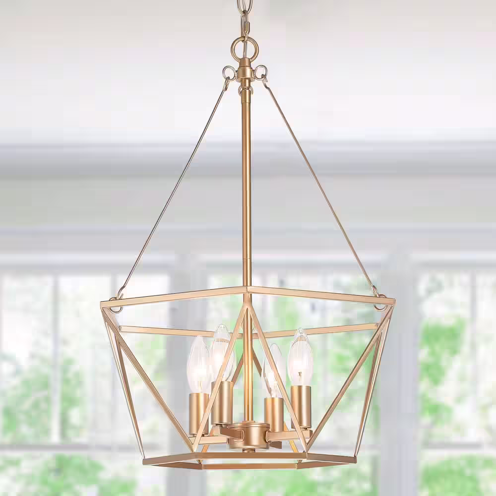 Uolfin Modern Gold Dining Room Chandelier, 15.7 in. 4-Light Farmhouse Cage Bedroom Chandelier Pendant Light For Kitchen Island