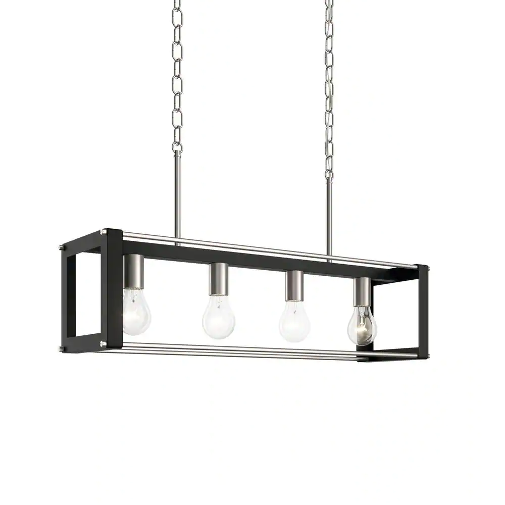 KICHLER Chatwin 30.6 in. 4-Light Brushed Nickel with Black Farmhouse Island Linear Chandelier for Kitchen