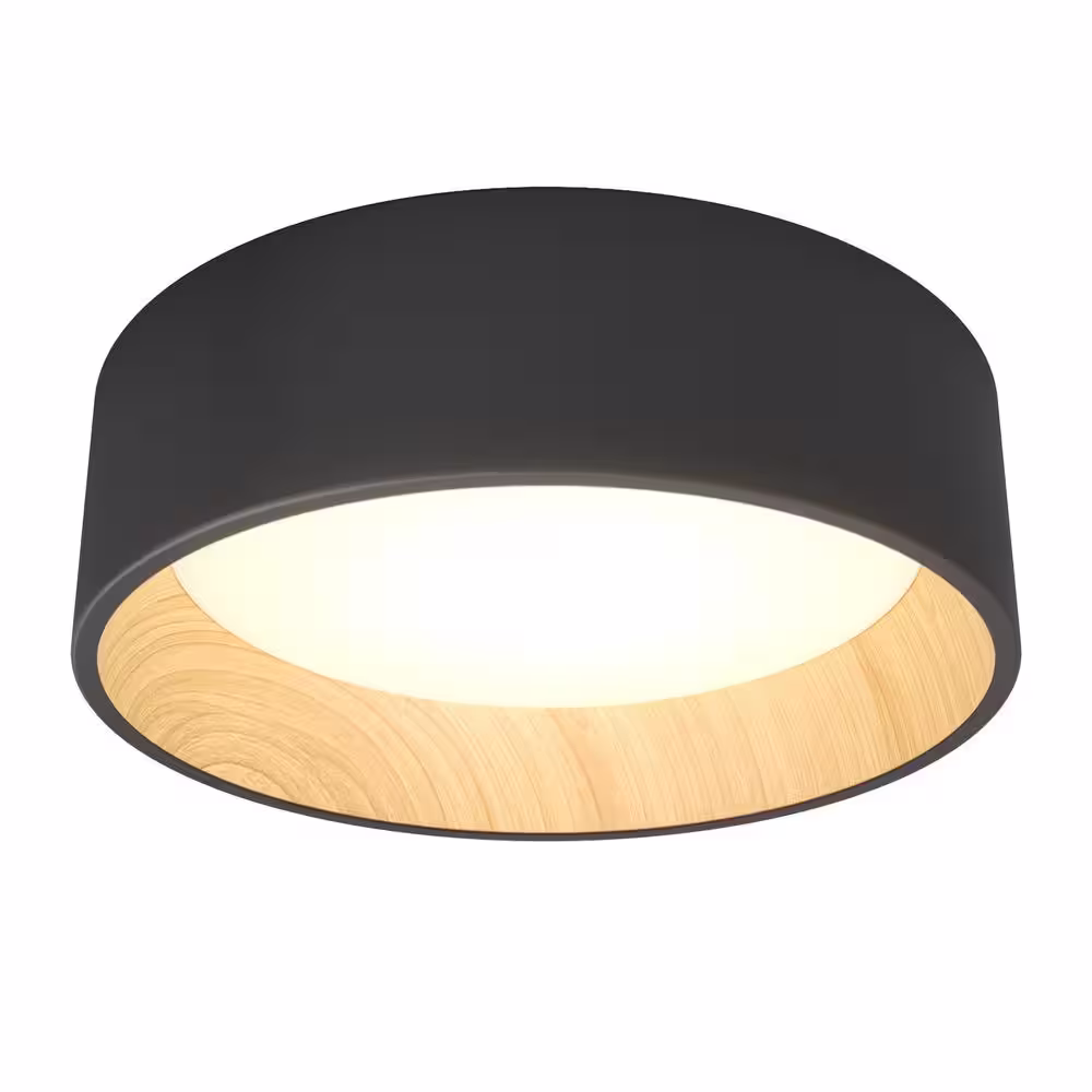 Artika Alton 13 in. 1-Light Modern Black and Wood Integrated LED 3 CCT Flush Mount Ceiling Light Fixture for Kitchen or Bedroom