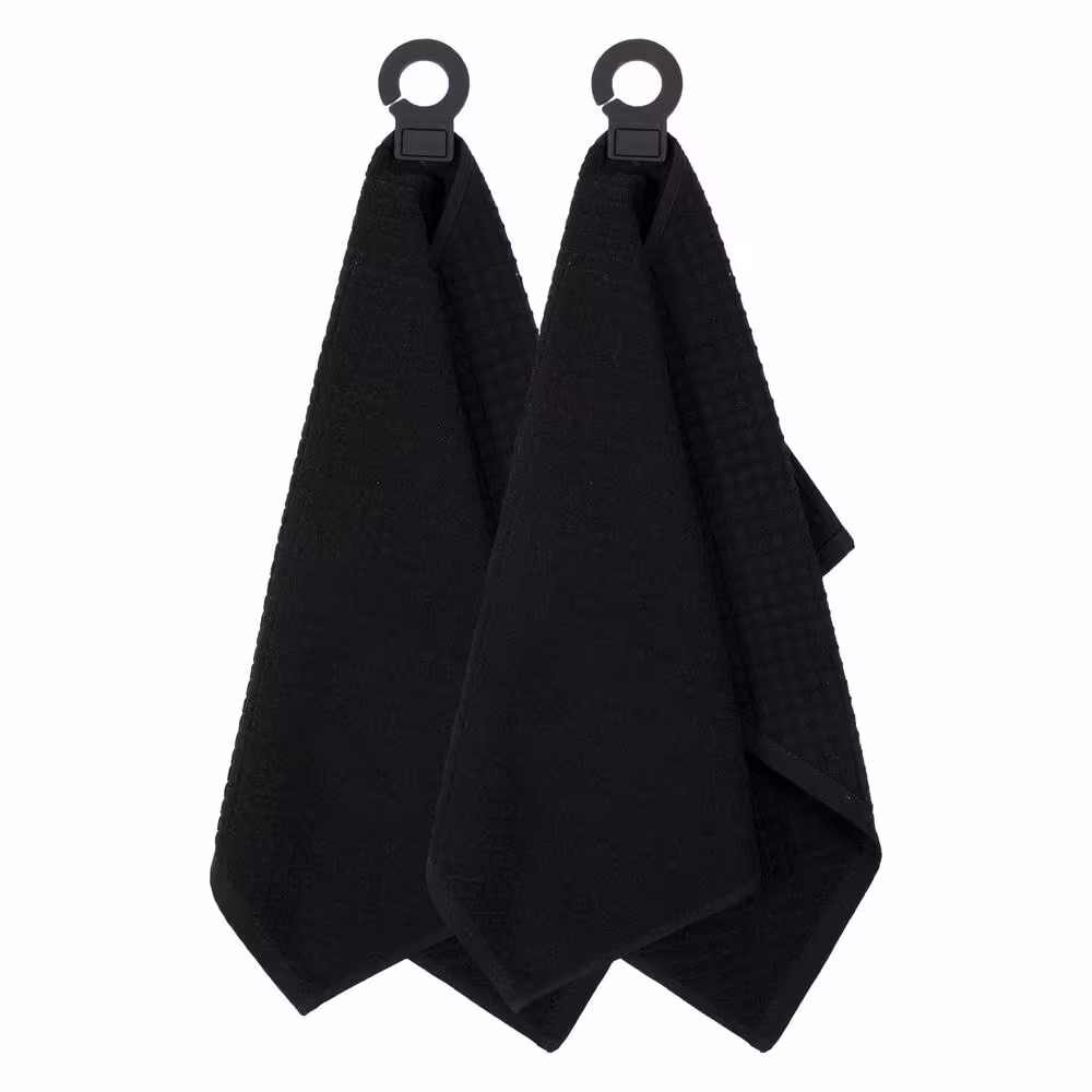 RITZ Hook and Hang Black Woven Cotton Kitchen Towel (Set of 2)
